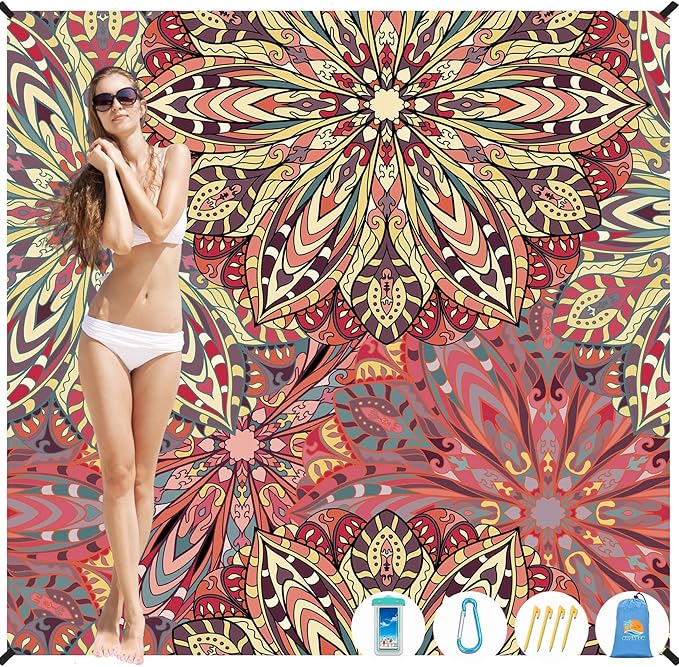 - 🛒PACKABLE SAND RESISTANT BEACH BLANKET MAT:The package includes 1 beach blanket,4 ground stakes for windproof,1 carabine for carry.You can enjoy a wonderful outdoor time with your family.If you have any questions,please don't hesitate to contact us.