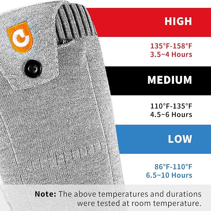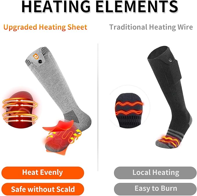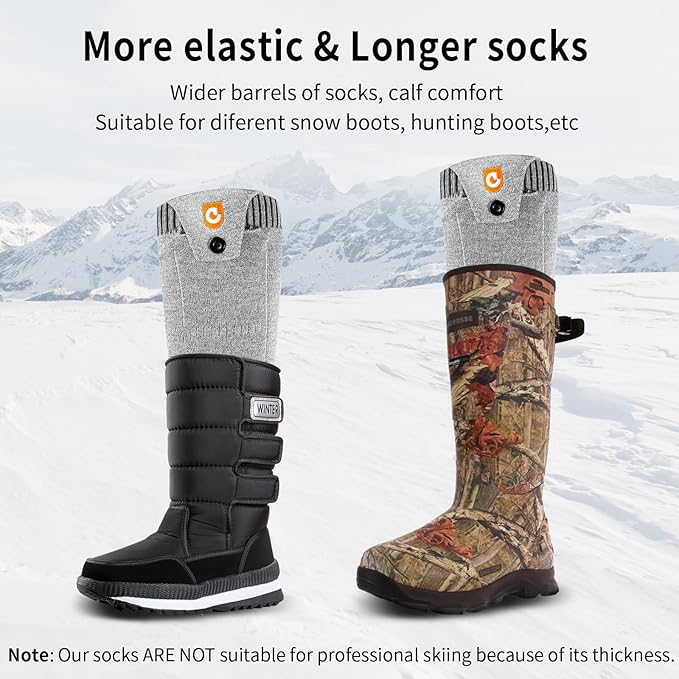 - Extra Large Capacity Batteries: Our heated socks are equipped with two 5000 mAh rechargeable batteries, the battery capacity is more than double of other heated socks available on the market, and the batteries are light in weight and can be used for a long time without frequent recharging. The extra-long battery life can meet your needs of keeping warm for a long time outdoors, and the large-capacity rechargeable battery electric heater socks are perfect for long trips and outdoor sports.