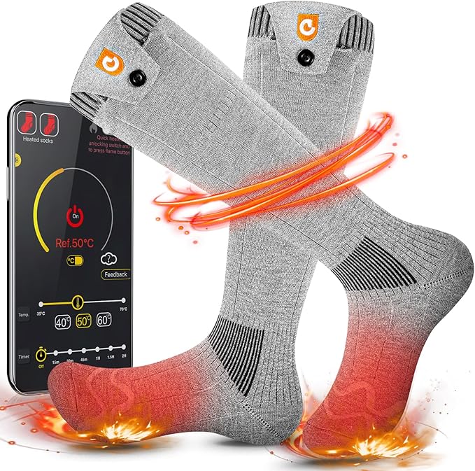 Heated Socks for Men Women, 5000mAh APP Control Battery Heated Socks Rechargeable Washable, Electric Socks Foot Warmer for Hiking Biking Camping Skiing Hunting Outdoor Work, Heating Socks