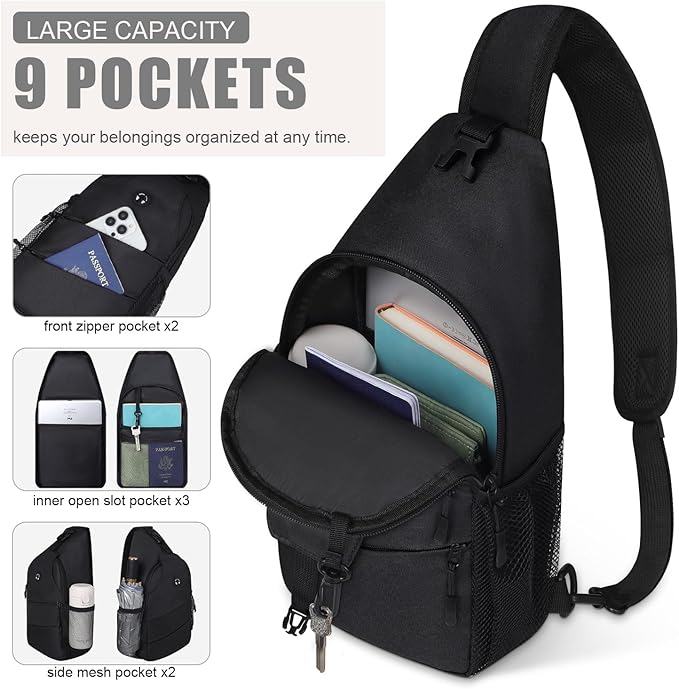 - Well Organized- Multi-pockets: You don’t have to waste time searching for things in a cluttered bag! We have 2 front zipper pockets and a buckle pocket that can fit your wallet, power bank, and tissue. The main pocket has enough space to fit all the essentials you need, it has 4 open pockets can easily store your iPad, cosmetics, or other essentials. Side mesh pocket can store anything you need for easy access. A special hook for hanging your keys! Have everything you need within reach!