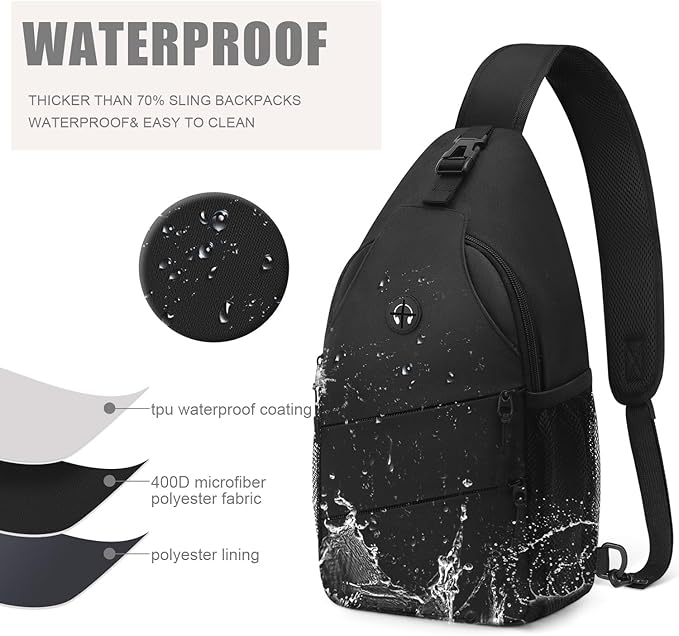 - Durable & Waterproof Material: Our chest bag are built to last with thick, durable, and abrasion-resistant fabric. The material is also waterproof and tear-resistant, whether you’re hiking through rough terrain or commuting in the rain, our backpacks will keep up with you, ensuring that your belongings stay safe and dry. The backpacks are designed to be lightweight and comfortable, making them perfect for long hikes or daily commutes.