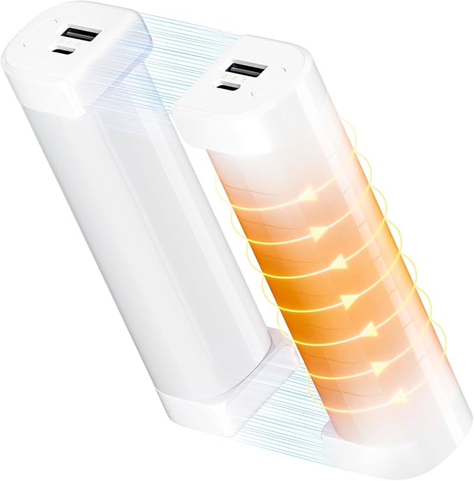 - 🔋【10000mAh Rechargeable Power Bank】Stay powered up on the go with our 10000mAh rechargeable power bank. Featuring two 5000mAh batteries, it fully charges in just 3 hours and provides 4-14 hours of warmth. As a power bank, it can fully charge your devices with the included USB-C cable. Note: The hand warmer cannot charge other devices while heating. No more worrying about your phone running out of battery when you’re out.