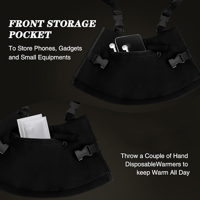 - Wide Application: The Waterproof Hand Warmer is for hunters who don't let a little cold, wet weather stand in their way. The Hand Muff can be applied to various ocns such as hiking, photography, golf, hunting, ice fishing, snow camping, kicking, snow sweeping, etc. This Hunting Warmer Bag is washable and easy to clean. It can be a practical gift for those who need to do hunting without gloves in cold winter