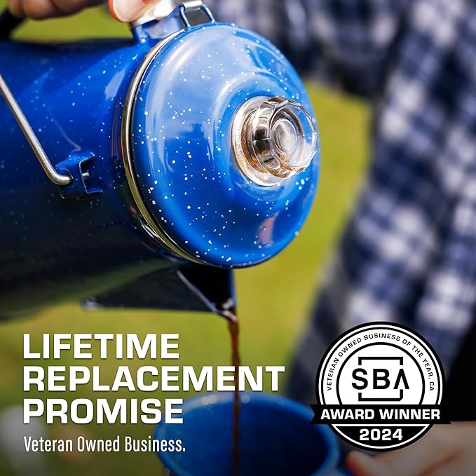 - LIFETIME REPLACEMENT PROMISE: Top materials & workmanship enable a superb promise. Shop with confidence. This is the last camping coffee pot you will ever need. US-based customer service provided by veterans