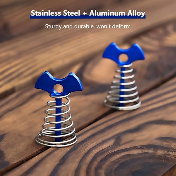 - Quality Material: These spring tent rope tighteners are made of high strength aluminum alloy and stainless steel. Strong and durable, they will not rust or deform. Each deck anchor pegs are equipped with a D shape buckle to fit various sizes of ropes.
