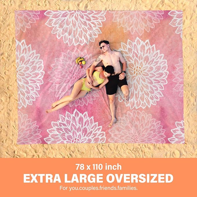Beach Blanket Oversized Extra Large78 X 110",Waterproof Sandproof Beach Blanket 2-8 Adults Lightweight Durable for Travel Camping Hiking Picnic