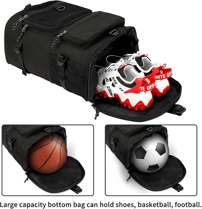 • ★【Separate Shoe Compartment or Ball Compartment 】 Separate bottom compartment for shoes, or basketballs, or footballs, or dirty clothes, allowing you to switch freely in different states of travel, business trips and outdoor sports.