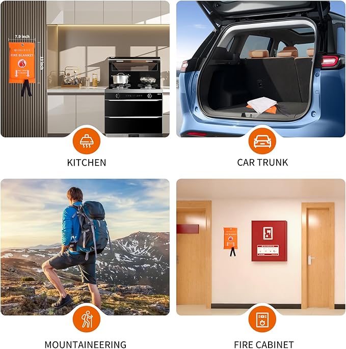 2024 Emergency Fire Blanket,Fire Extinguisher Blanket,Fire Suppression Blanket,Flame Retardant Blanket,Fire Safety Blanket for Home,Kitchen,School,Grill,Car,Office,Warehouse(40”x40”) (1 Pack)