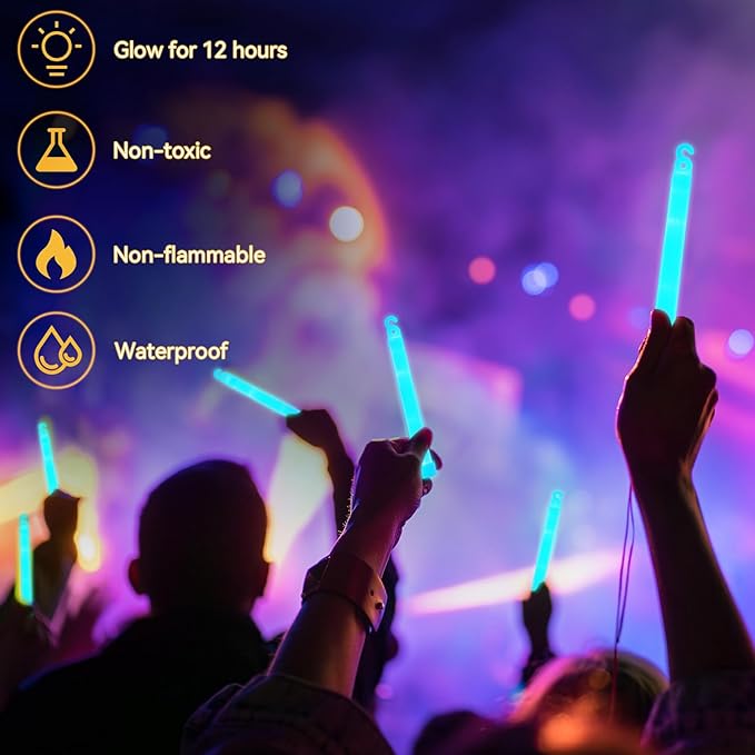 - Multipurpose Utility: glow in the dark sticks are versatile, ideal for numerous indoor and outdoor activities; They are suitable for camping, hiking, emergency situations, parties, concerts, and more, which can be markers or signal devices in low light conditions, contributing to safety during outdoor adventures