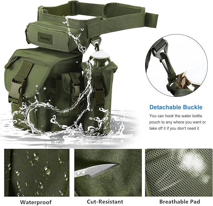 Jueachy Drop Leg Bag for Men Tactical Metal Detecting Thigh Pack with Water Bottle Pouch