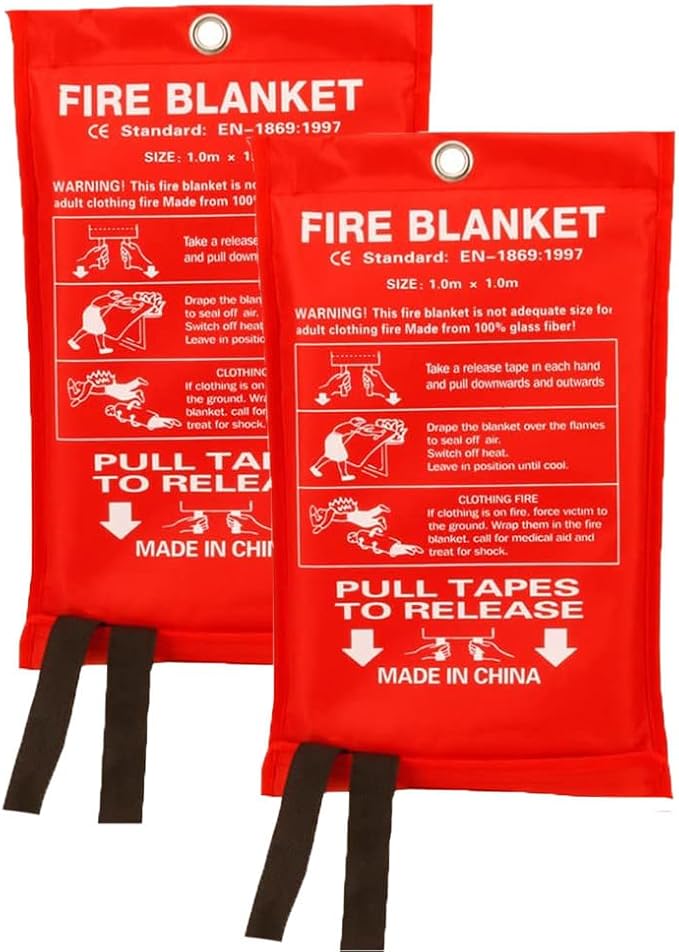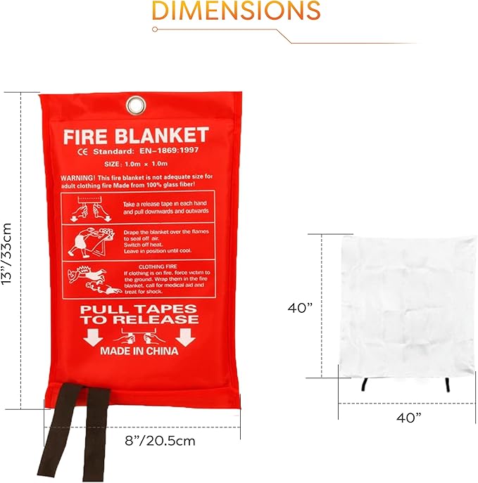 - 🔥【 Excellent Heat Resistant 】- These fire extinguisher blankets are big (39.3 x 39.3 inches), with the ideal thickness of 1mm. They can handle really hot temperatures, up to 1076°F (580°C), without melting or catching fire. They are great for putting out fires from things like chips, oil, and fat safely.