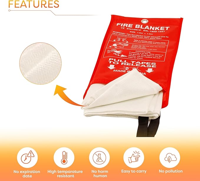- 🔥【 Mess-Free Fire Solution 】- Our fire safety blanket is the perfect solution for stopping fires without making a mess. It's made to be quick and clean for fire safety. This special blanket makes dealing with emergencies easy and stress-free.