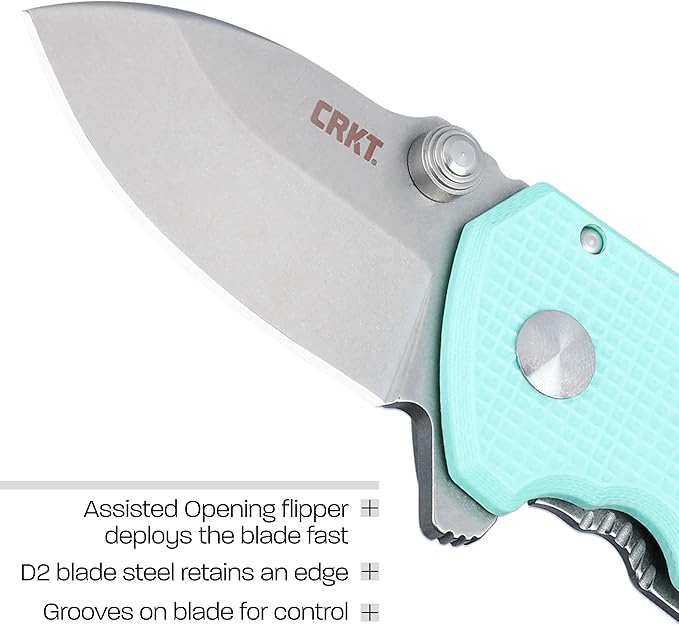 CRKT Squid Assisted Opening Folding Knife: Drop Point with D2 Steel Blade, G10 Handle, Frame Lock, 2485B