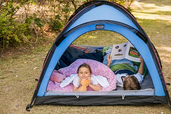 This camping tent was super easy to set up and kept us dry even during heavy rain. Spacious enough for the whole family!