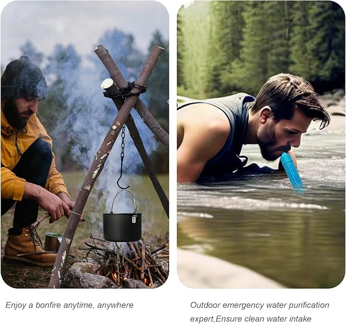 - Camping Essentials: This survival tool kit is currently the most comprehensive, multifunctional, and abundant outdoor first aid kit on the market, covering a wide range of scenarios. It includes a multi-functional axe, a straw-type water purifier, a tripod for campfires, a vacuum poison extractor, and more, providing a complete set of tools. It also has the ability to quickly set up two temporary shelters or temporary medical stations, offering protection against wind, rain, and insulation.