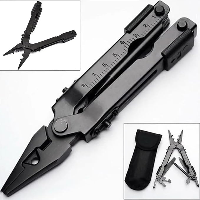 13 in 1 Portable Multifunction Tool Pliers Screwdrivers ire Stripper Folding Plier Pocket Cutter EDC Combination Tools for Outdoor Camping Fishing (Matte Black)