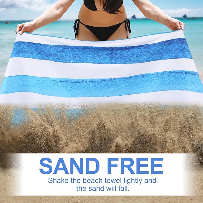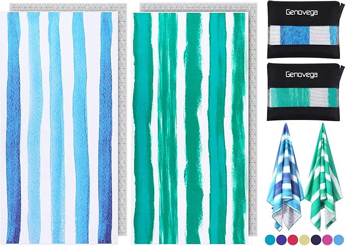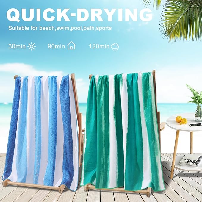 2 Pack Microfiber Oversized Beach Towel Lightweight Thin Sandproof Compact Quick Dry Clearance Towels Extra Large Sand Free Pool Travel Beach Essentials Accessories Women Adult Gift Bule Green Stripe