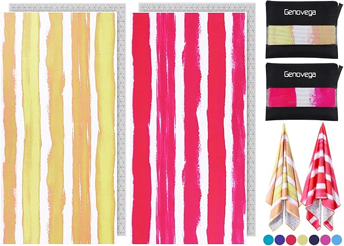 2 Pack Microfiber Oversized Beach Towel Lightweight Thin Sandproof Compact Quick Dry Clearance Towels Extra Large Sand Free Travel Beach Essentials Accessories Women Men Adult Gift Pink Yellow Stripe