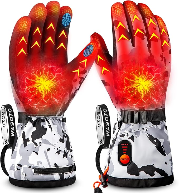 Heated Gloves for Men Women with 7.4V 22.2WH Rechargeable Battery Waterproof Heated Ski Gloves for Motorcycle Skiing Hunting Fishing Working Hiking Camping Arthritis Raynaud