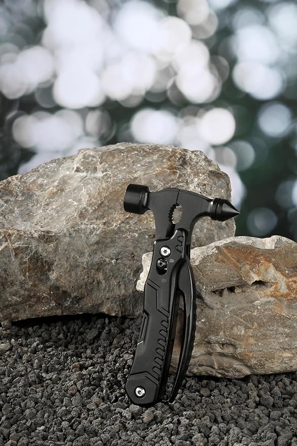 - ERGONOMIC DESIGN - High-quality and lightweight multifunctional survival hammer 14 in 1 is made of stainless steel. The ergonomic aluminum alloy handle provides you with a comfortable grip during use. The small size of 5.43 x 2.47 inches will allow you to carry it in your pocket and use it whenever you need it.