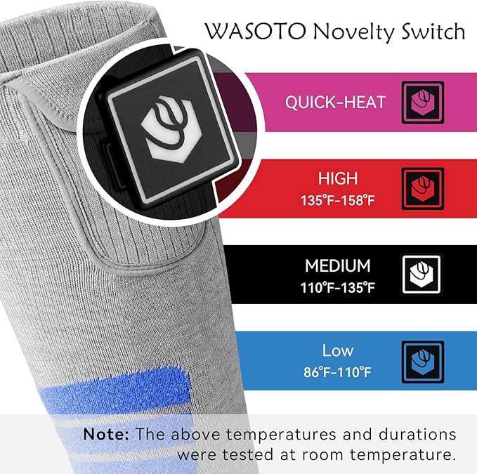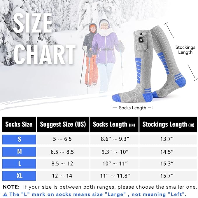 - 【Long-lasting Battery】7.4V 22.2WH battery for rechargeable heating socks brings faster heating speed, higher heating efficiency, and better performance in low temperature environment. It can work continuously for up to 10 hours (under low battery & full charge), keeping your feet warm all day.