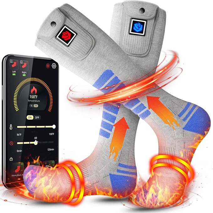 Heated Socks for Men Women 7.4V 22.2WH Battery 2023 Upgraded Heating Socks with APP Remote Control for Hunting Fishing Camping Hiking Outdoor Work(Blue,L)
