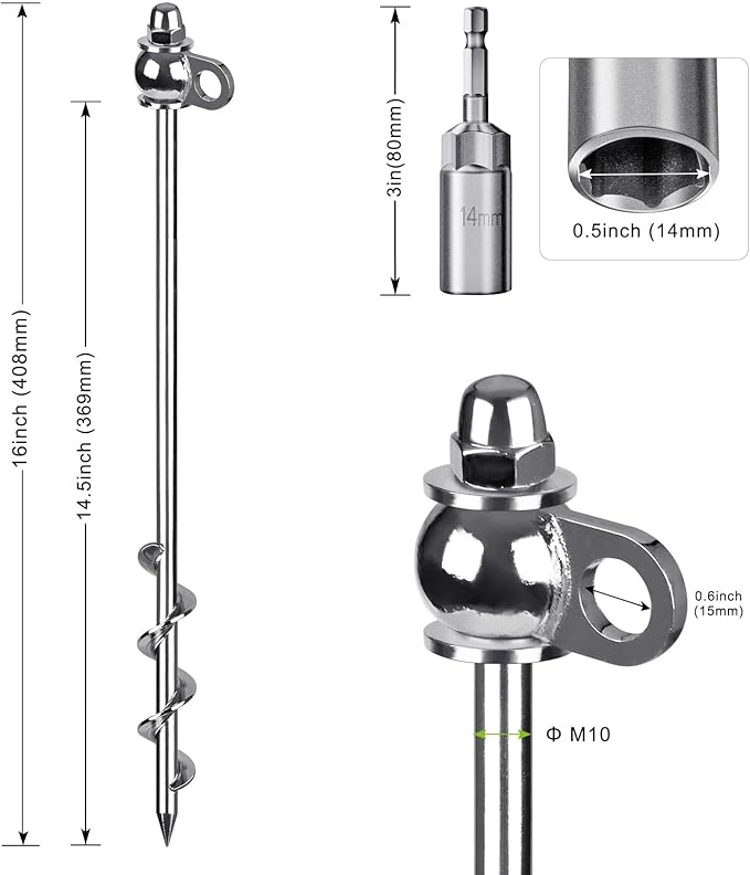 - 【Easy to Install and Remove】You can easily screw these spiral anchor into the ground with a drill and screw them out again when you don’t need them. You can install them in a few minutes, saving your time and effort.