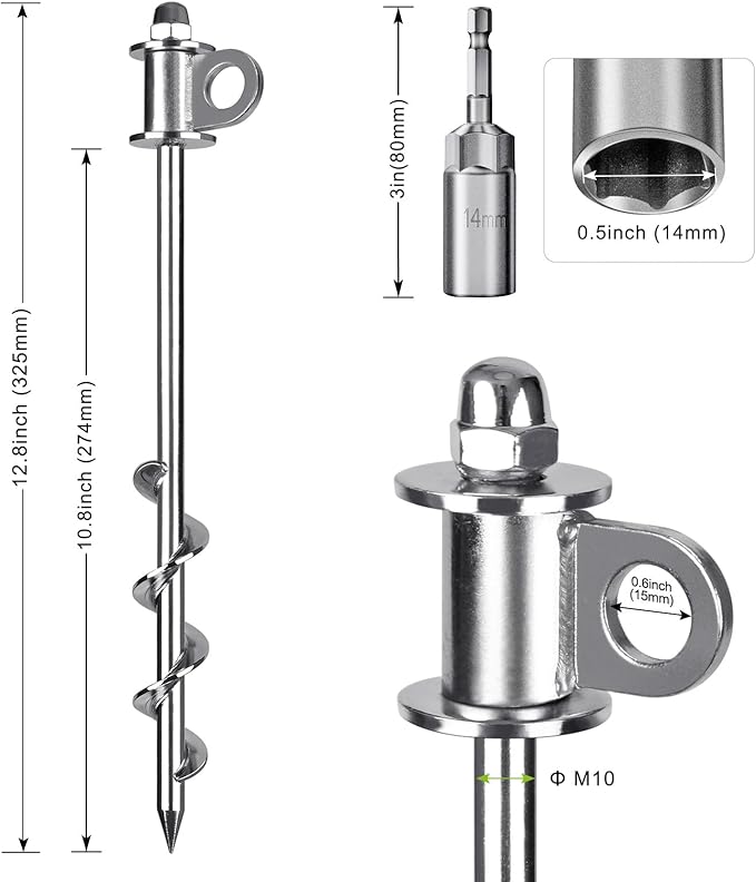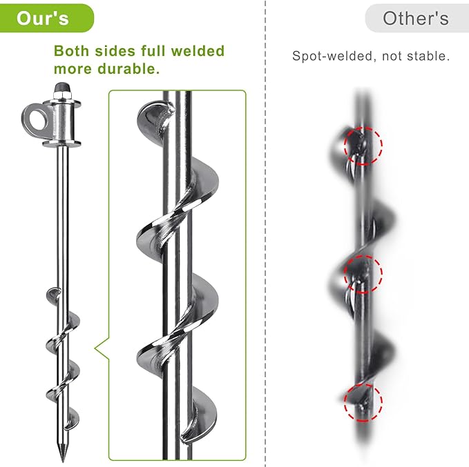 - 【Easy to Install and Remove】You can easily screw these spiral anchor into the ground with a drill and screw them out again when you don’t need them. You can install them in a few minutes, saving your time and effort.
