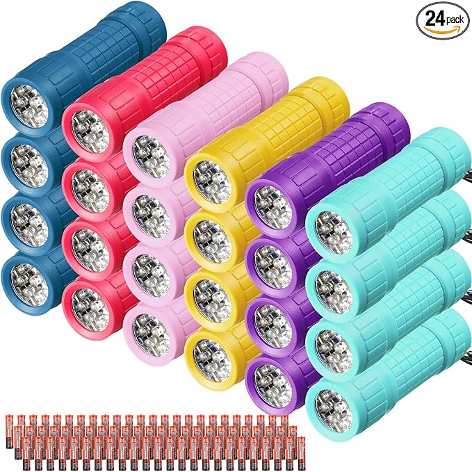 - Flashlights Set: you will receive 24 pieces of mini colorful flashlights; These flashlights come in 6 colors; You will get 4 pieces of each color, and each flashlight has been installed with matching batteries; There is enough quantity for your convenience; Use and replace the flashlight, you can also give the flashlight as a gift to your relatives and friends