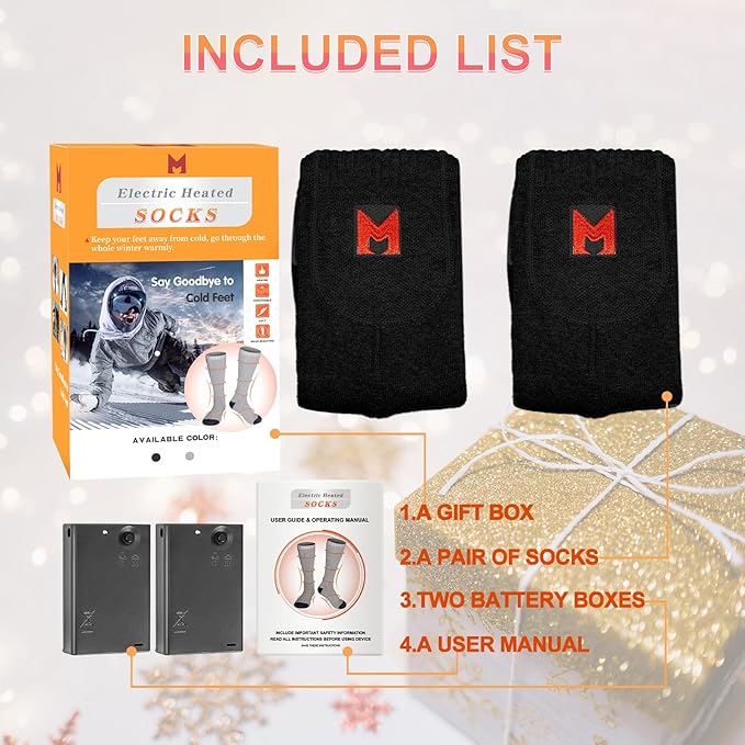 Heated Socks for Men Women, Electric Heated Socks, Battery Heated Socks for Skiing Camping Cycling Hunting Fishing Outdoor Sport Warm Winter