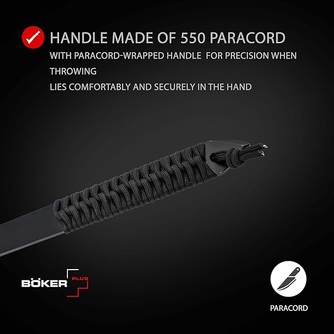 - LIMITED LIFETIME WARRANTY - throwing axe set with 3 full-tang axes - the black Hatchet double axes made of 3Cr13 steel - have an easy-grip paracord handle - with Boker limited lifetime warranty.