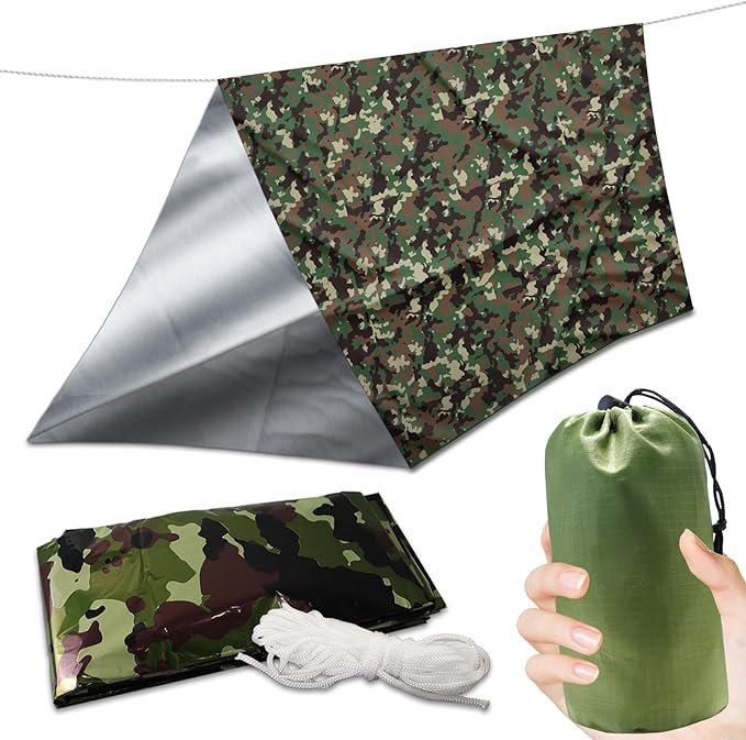 - TOUGH EMERGENCY BLANKET: Our Emergency Tent survival ultralight tarp can be used as your emergency blanket, space blanket, survival shelter and emergency sack to protect you from the harsh conditions of the environment, keeping you warm and physically performing in extreme conditions, and our bivy sack is thicker, more flexible and reusable, you can use it on its own or augment your existing tent.