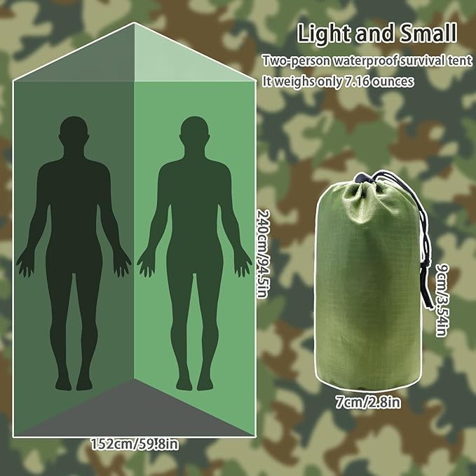 Ultralight Survival Tent 2 Person Emergency Shelter Outdoor Thick Emergency Blankets Nylon Stuff Sack Tube Tent Survival Tarp Camping & Outdoor Survival Kits for Camping Hiking Car Use