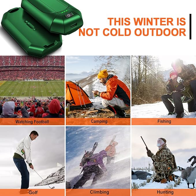 - [Small in Size, Easy-pack and Go] Rechargeable hand warms pair is smaller than the size of a credit card, only 1/2 the weight of a mobile phone. The thin design allows this 2-pack hand warmer to fit into pretty much any pocket, glove, hat to keep you warm when you’re in the cold. It's the perfect partner to fight off the freeze whenever and wherever you need warmth, making golf, fishing, hiking, camping, climbing, skiing, football/baseball match or icy cold drive much more pleasant and warm.