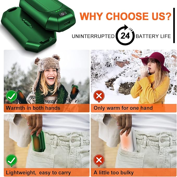 - [Warm Winter Gifts & Worry-free After-sales] For tech-lover, sports, or outdoor enthusiasts and winter commuters, this rechargeable hand warmer makes the perfect gift for the cold weather season. Bring the warmth from the fingertip to their heart in Christmas, Birthday, Anniversary, Thanks Giving Day, Valentine’s Day. Come with a one-year warranty, if you have any issue of our electronic hand warmer, please contact us without hesitation, we will take serious in any voices of our users.