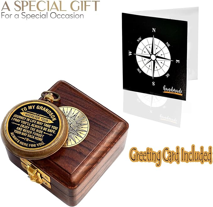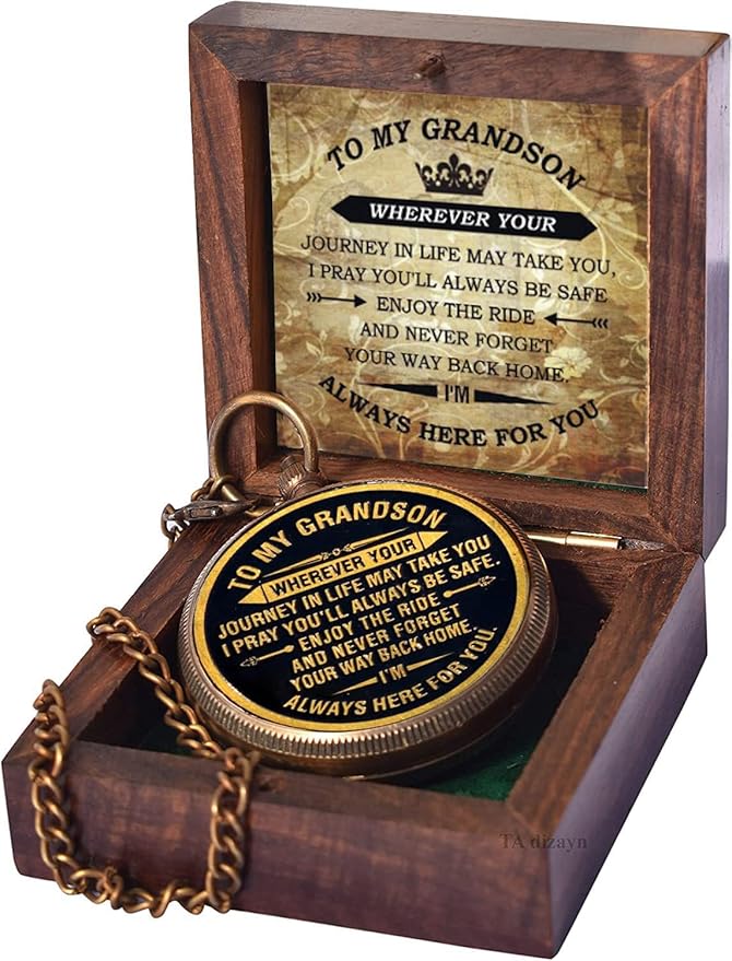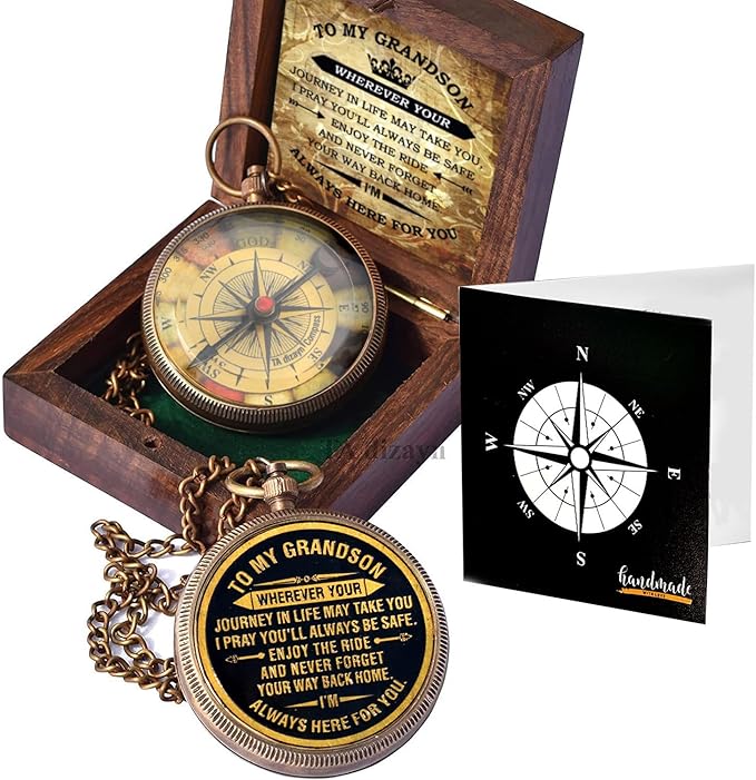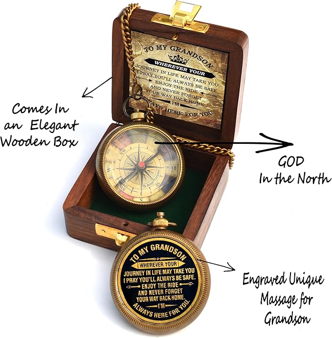 - 1st First Communion Grandson Gift Idea:- Handmade Quote Engraved compass 2 inch (approx.) comes in Wooden box. A wonderful gadget to carry along while camping, scout camp, boating, hiking, traveling, and riding. Kids would love to learn the lessons of directions with this functional vintage look compass.