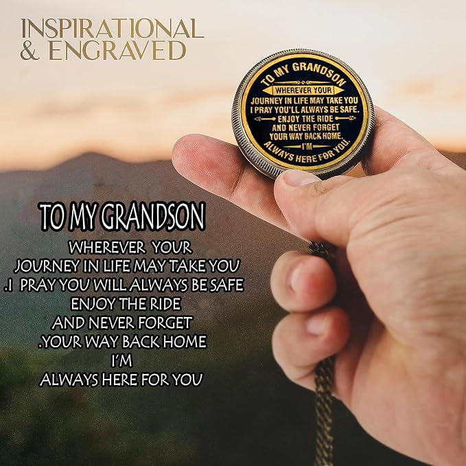 Gift for Grandson Brass Compass Engraved Quote | Memory Present to My Grandson Birthday, Baptism, Graduation, Confirmation, Love, Gift idea by Grandpa Grandma, 2025 Gift