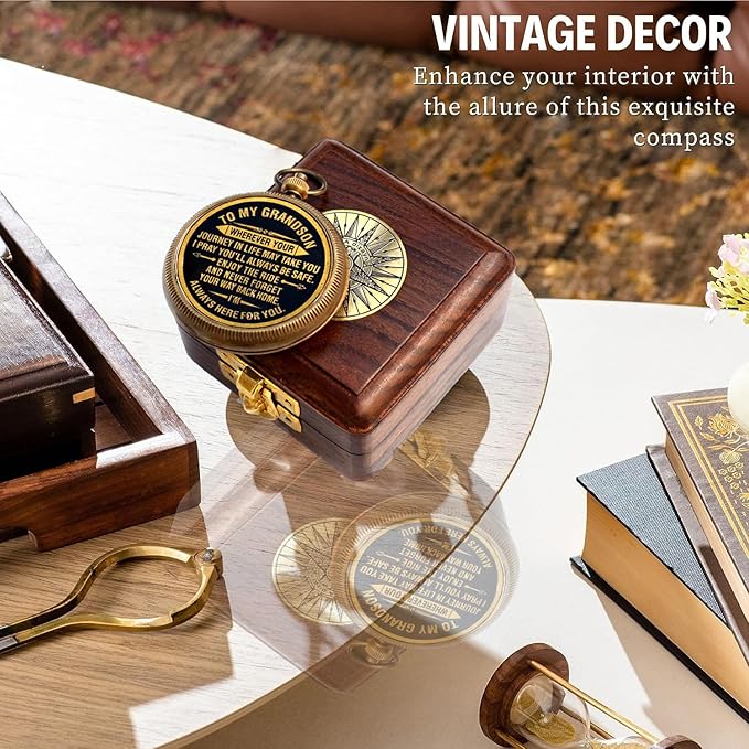 - Gift for Grandson from grandpa Grandma - Engraved Antique Style Brass Compass - Reinforcing & Reminder of Love & confidence for Grandson's Gift idea for boys on Birthday, Baptism, Confirmation, Graduation gift for Him, Boy from grandmother & grandfather