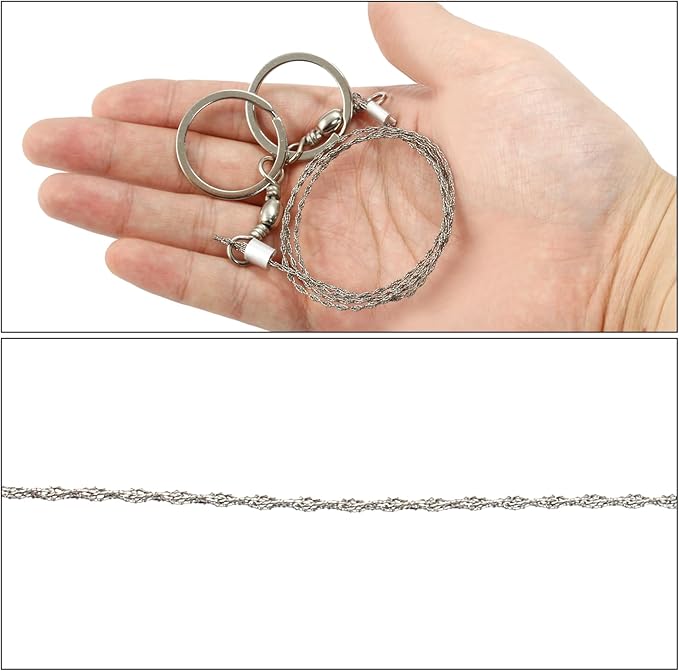 - High Quality Material: The camping saw chain is made of high-quality stainless steel material, which is not easy to rust and is corrosion-resistant. Composed of four steel wire ropes, with good strength.