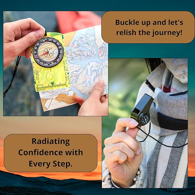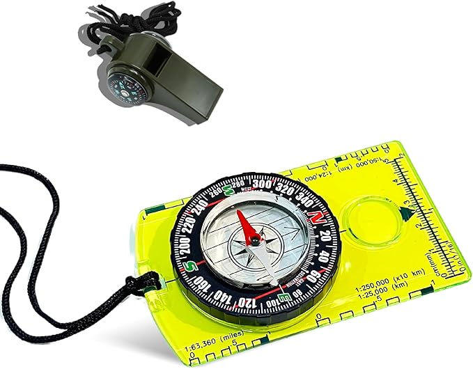 - IMPRESSIVE FEATURES: Both Compasses come with a non-magnetic Acrylic Baseplate to not intwith the magnetic needle, and have the best accuracy. The needle is placed in a bubble that allow the needle to have a quick 360 degrees rotation helping us to have a accurate and fast reading of the direccion the we have to take. Its differents Ruler Scales help the hiker to read the map more accurate. It also has a Magnifying Glass that help us to read geological maps and small details of the map.