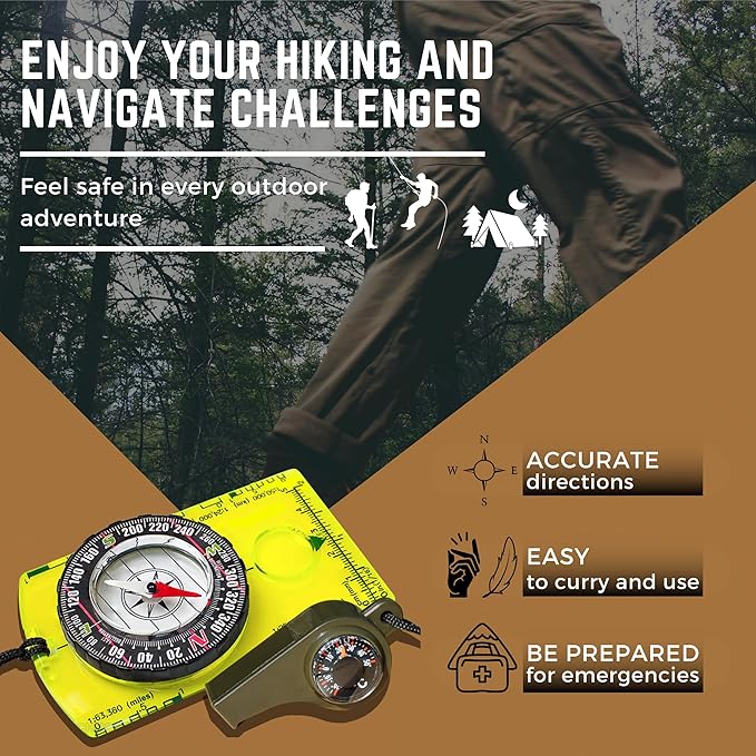 - HIGH QUALITY: This is a high quality product that it is a waterproof compass made with acrylic materials to prevent interference with the magnetic needle and ensure accurate readings. It is durable, compact, and portable, that makes it perfect for every outdoor activity