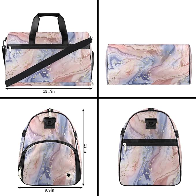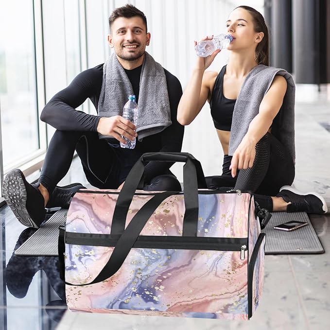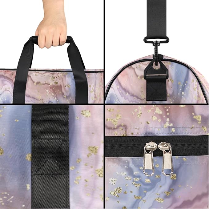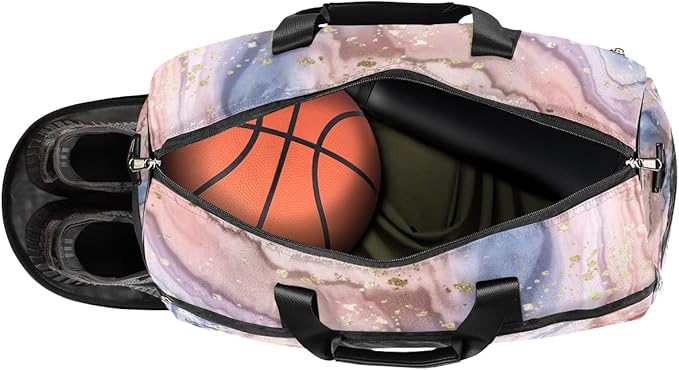 Gold Glitter Marle Dry Wet Depart Duffle Overnight Bag with Shoes Compartment & Wet Pockets, Water Resistant Weekender Travel Gym Pouch For Swim Gymnastics Ballet Sleepovers