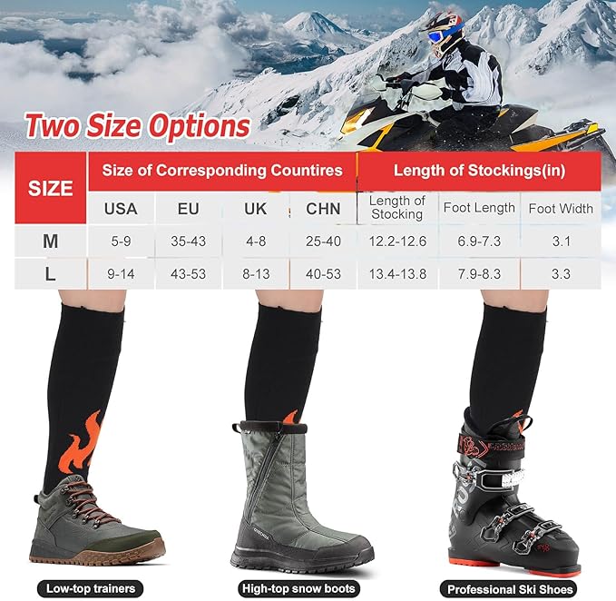 - 【Perfect & Versatile use】 Our electric heated socks are packed by a beautiful box, perfect for families and friends on Christmas, birthdays, Thanksgiving days. These heated socks for men rechargeable are not limited to just one type of footwear. They can be used in boots, shoes, slippers, or any other kind of closed-toe footwear, making them a versatile that can be enjoyed in various situations. It's a thoughtful that brings comfort and relief to someone's feet.