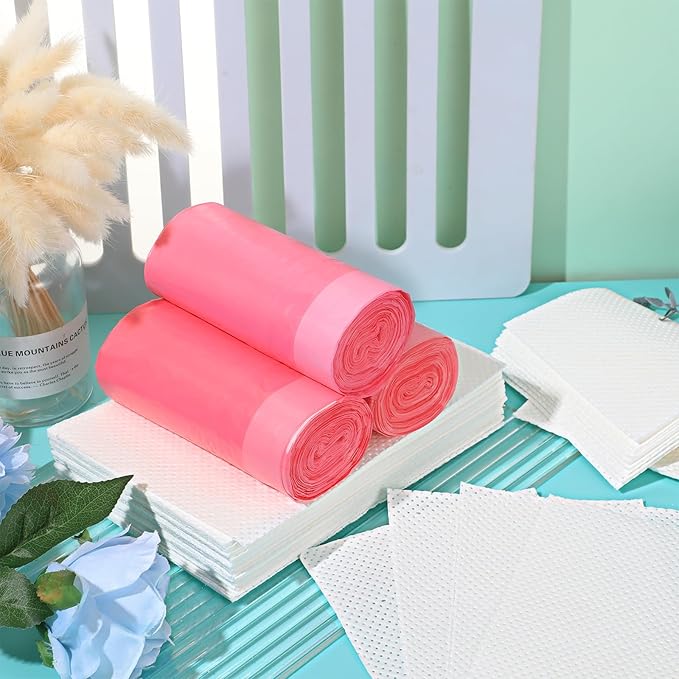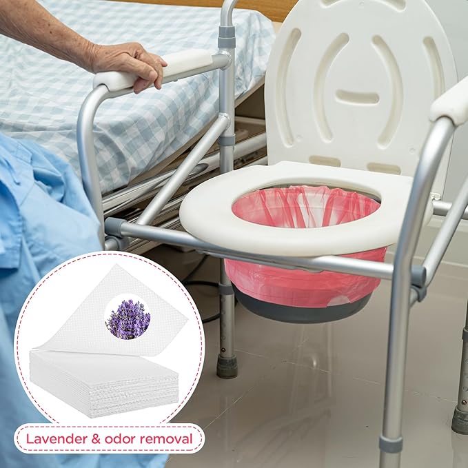 - Convenient Usage and Hassle Free Cleanup: these commode liners offer a hassle free and mess free cleanup solution; The liners and absorbent pads are individually folded and easy to insert in a toilet bucket; Post usage, they can be securely tied with a drawstring and discarded conveniently in the trash, saving you from unpleasant cleaning experiences