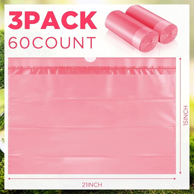 60 Set Bedside Commode Liners with Absorbent Pads Disposable Potty Bags for Portable Toilet with Commode Pads for Adult Elderly Commode Chairs Bucket Portable Camping Toilet Bags (Pink)