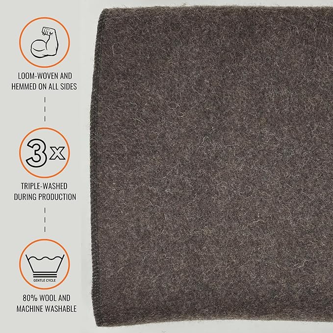 - PERFECT ANYWHERE: Loom-woven and hemmed on all sides with contrast lock stitching, our blanket looks right at home in the woods or on your couch. Wool is a naturally fire-retardant material. Our blankets are NEVER treated with any additional flame-retardant chemicals, making it safe for you and your family.