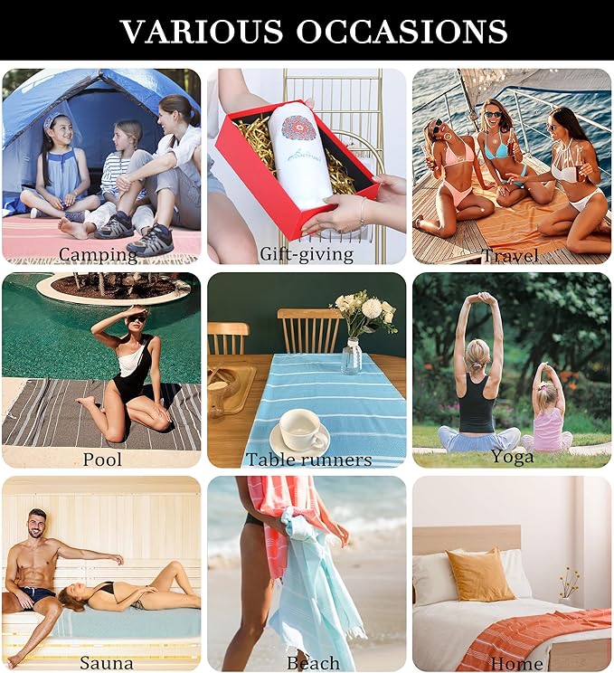 - [Super Absorbent & Quick Dry]: Its super absorbent and quick dry keeps you dry and ready to go. Its quick dry feature allows no damp smell ever and give you a decent clean feeling, which means less germs, bacteria and awful smell even in the humid climate. Perfect choice for swimming, camping, practicing yoga, surfing or dipping.