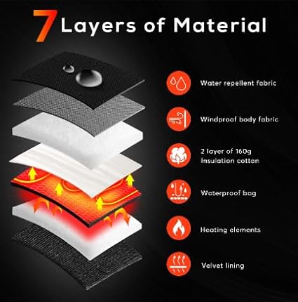 - 【Superfine Fibre & 7 layers of Materials】The palm part is made of superfine fibre, non-slip and more wear-resistant than others' PU material, leading to longer service life. 7 layers material ensures enough warmth. Velvet lining is comfortable to wear with performance upgrade. Besides, diving materials in battery insulation pocket ensure stronger temperature-locking effect.