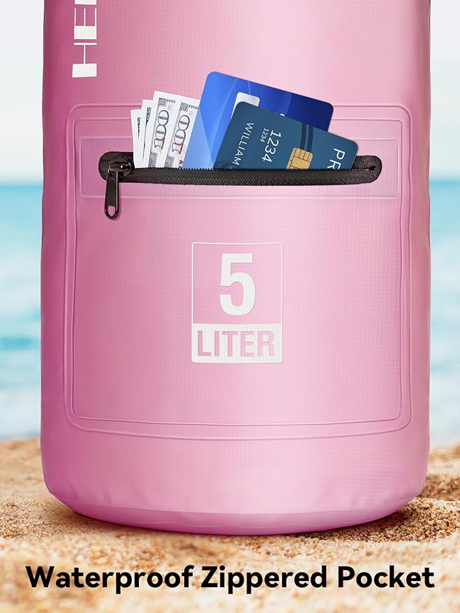 HEETA Waterproof Dry Bag with Front Zippered Pocket for Women Men, 5L/10L/20L/30L/40L Roll Top Lightweight Dry Storage Bag Backpack for Travel, Kayaking, Boating, Rafting, Camping, Hiking & Beach