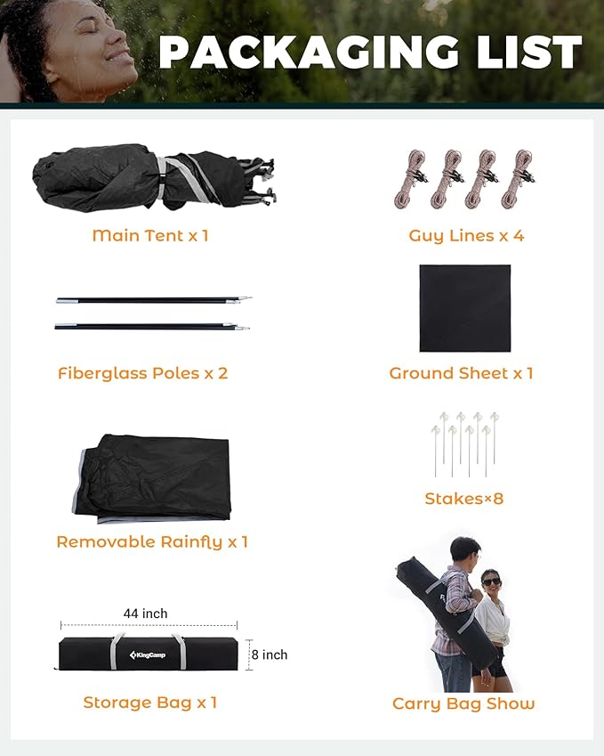 - QUICK SETUP & STORAGE: No tools required! Simply unfold the tent, extend the poles, and listen for the "click" sound to complete the setup. The entire process takes just 60 seconds, offering a hassle-free and quick shower tent experience. Comes with a storage bag for easy transport, with packed dimensions of 44" x 8" x 8".